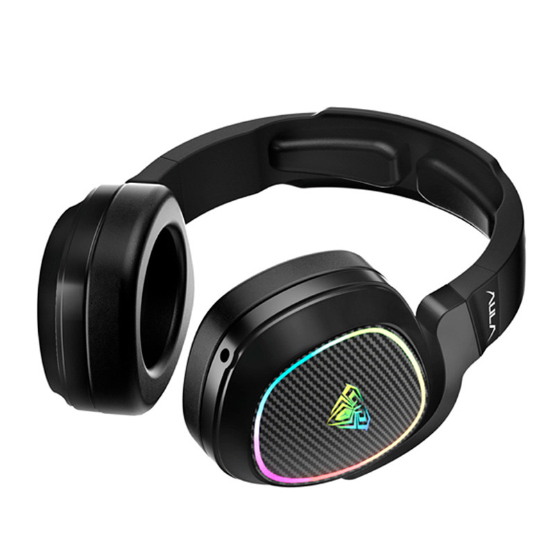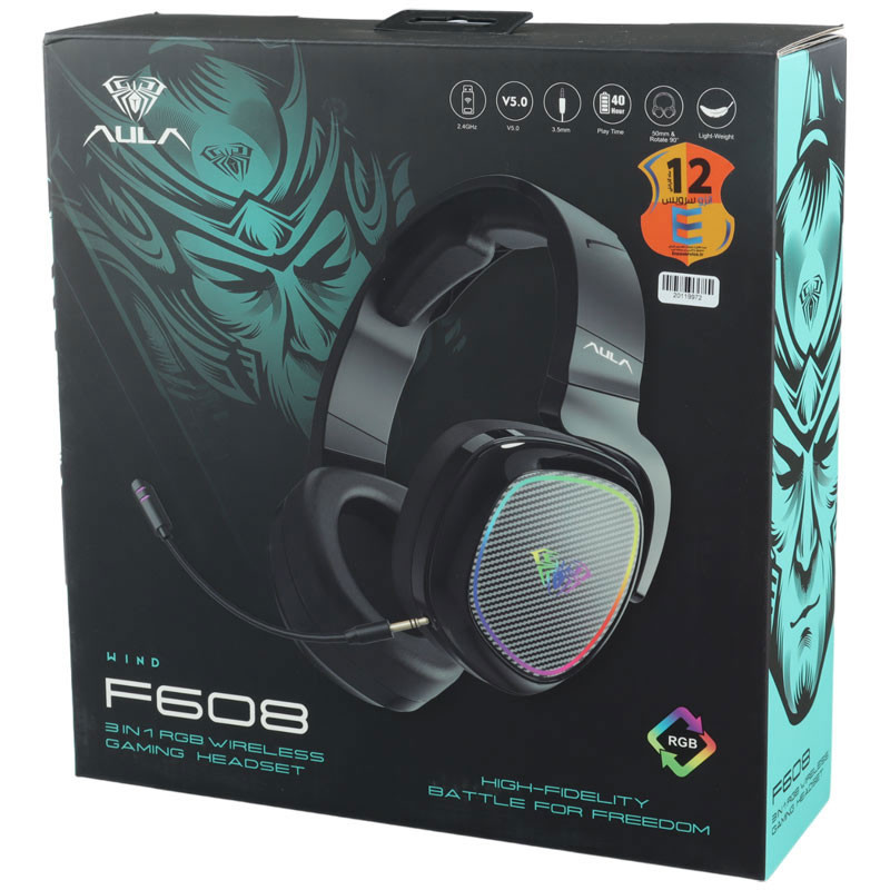 بدنه هدست گیمینگ Aula F608 ساخته شده از جنس پلاستیک و فلز، مجهز به چراغ RGB جهت ایجاد جلوه بصری زیبا