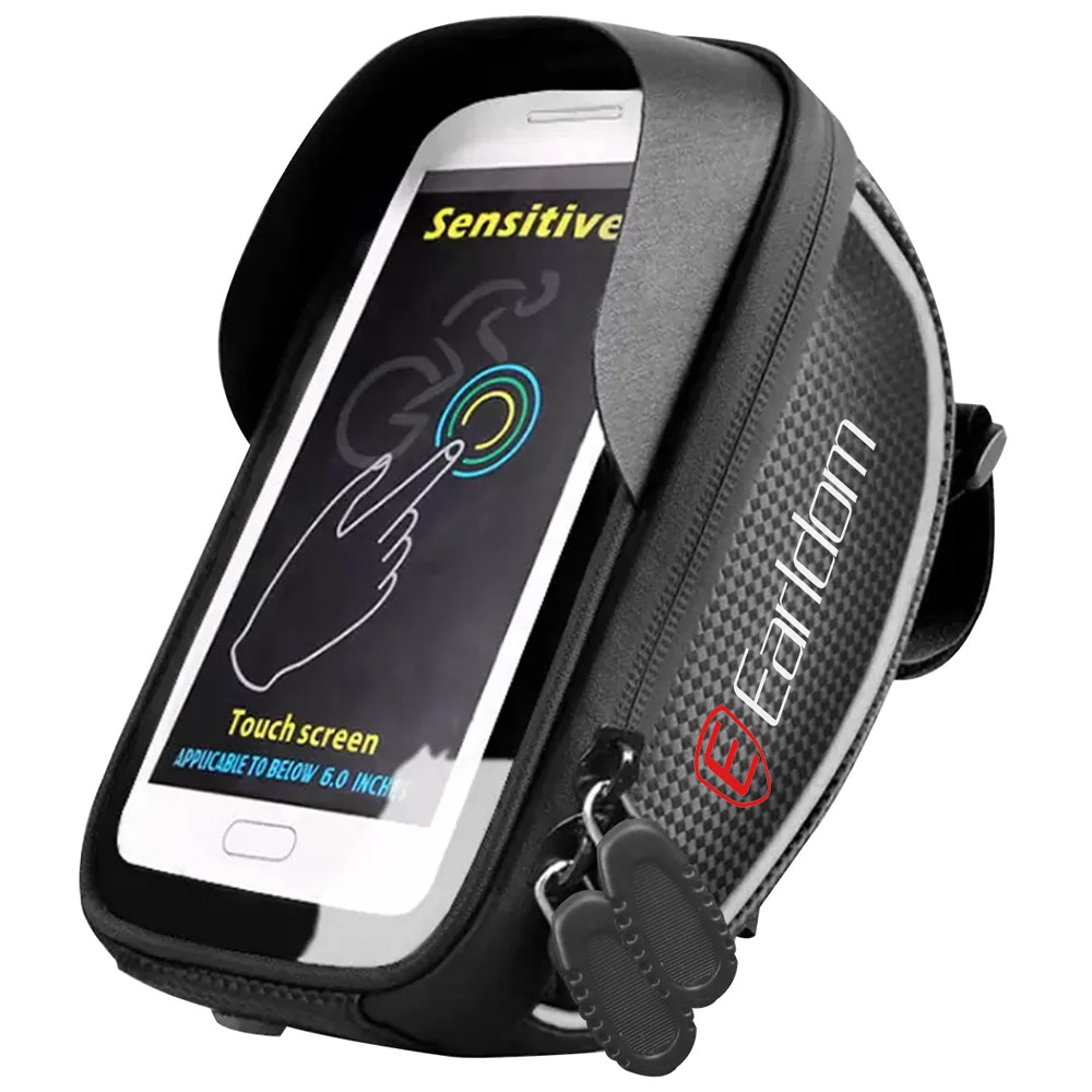 نصب این کیف موبایل ارلدام بسیار آسان و راحت است به طوری که ۳ بند جادویی دارد که آن را روی دسته محکم تر نگه می دارد ۱ نوار چسب در جلو + ۱ نوار چسب بلندتر در پایین بالا (کیسه را روی لوله سر محکم کنید و می توان آن را به طول مناسب برش داد) + ۱ نوار چسب روی پایین بدنه است که پایداری آن را فوق العاده بالا می برد تا حتی در جاده های سنگی و جاده های ناهموار آن را نگه می دارد و دیگر نگران افتادن و یا جدا شدن آن از موتور سیکلت و یا دوچرخه خود نمی شوید. اندازه آن بسیار متناسب است و لذا موقع رانندگی و یا حتی رکاب زدن به هیچ وجه به پای شما ساییده نمی شود و خیلی راحت می توانید به کار خود ادامه دهید. کیسه لوله بالای دوچرخه از مواد فوق سبک با بسته شدن زیپ های دوگانه است که باعث می شود آب به داخل کیسه نرود و حتی گوشی همراه شما را در برابر آسیب ها ایمن نگه دارد.