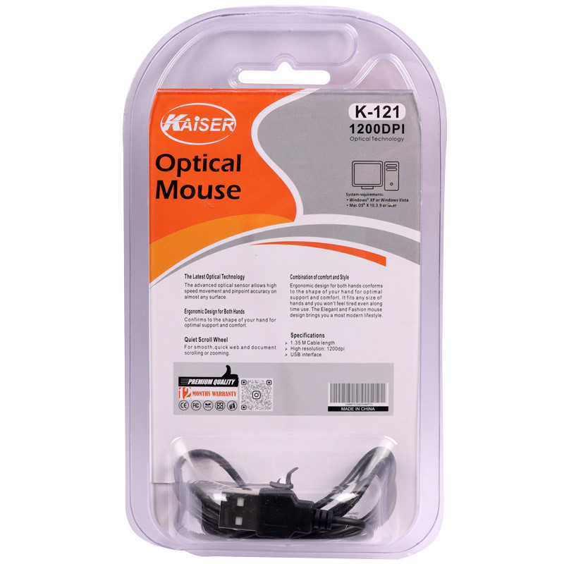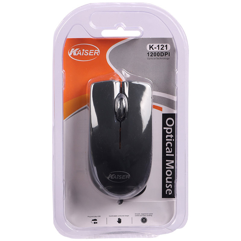 ماوس با سیم K-121 مدل KAISER یک ماوس با سیم با قیمت مناسب و کیفیت ساخت خوب است. این ماوس دارای دقت بالا و طراحی ارگونومیک است که آن را برای استفاده روزمره، اداری و گیمینگ مناسب میکند.