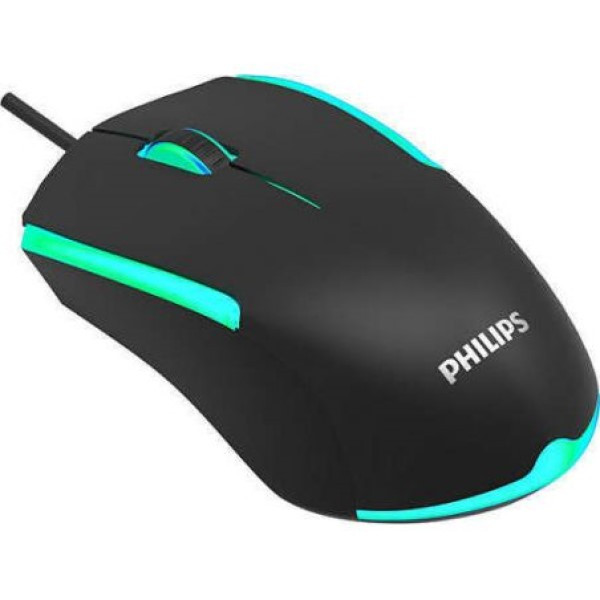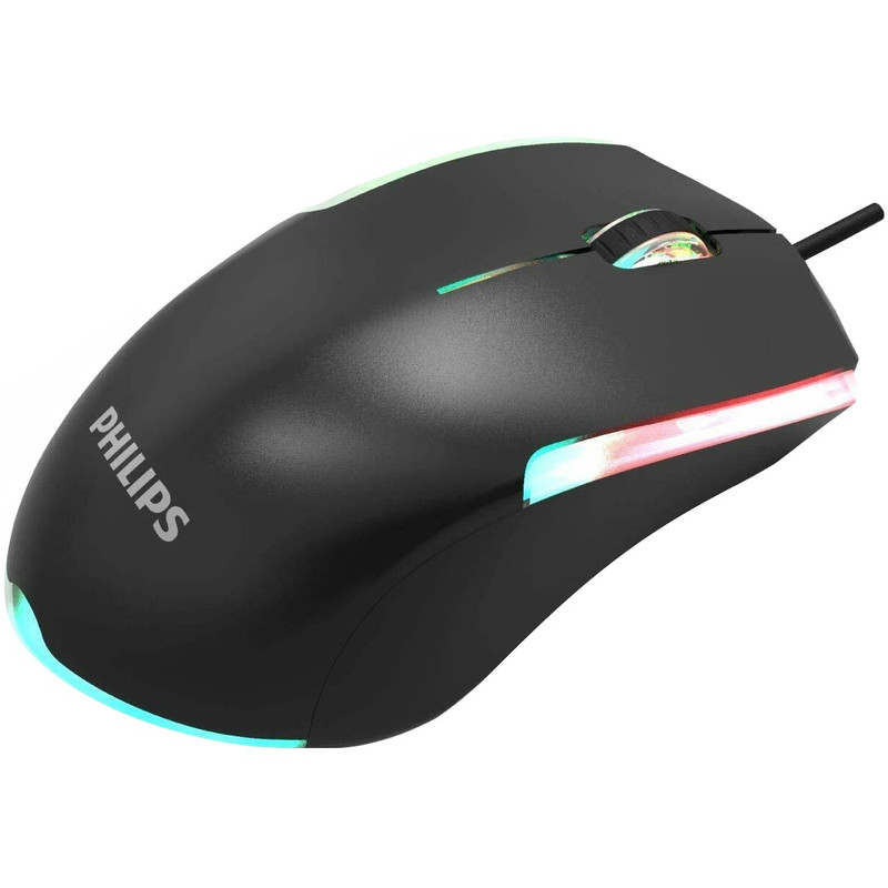 موس گیمینگ فیلیپس مجهز به حسگر اپتیکال با میزان دقت متغیر بین ۸۰۰/۱۲۰۰/۱۶۰۰/۲۴۰۰ نقطه بر اینچ، دارای نورپردازی چند رنگ
