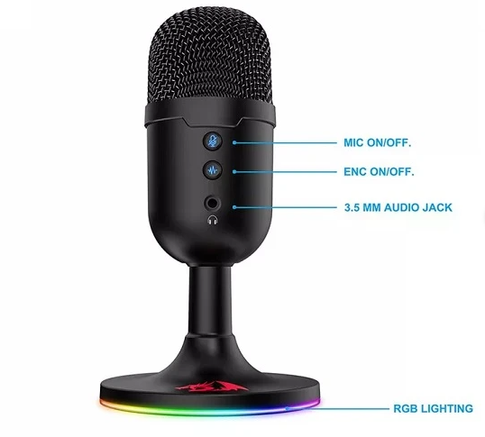 این محصول در ابعاد ۱۶۵×۹۰×۹۰ میلی متر اندازه ای مناسب و جمع و جور دارد و بر روی میز شما با پایه ی گرد ایستایی فوق العاده ای دارد. نور فوق العاده خیره کننده ی RGB در پایه ی این میکروفون به زیبایی دو برابر این میکروفون اضافه نموده است، از امکانات دیگر میکروفون پولسار ردراگون می توانیم به :