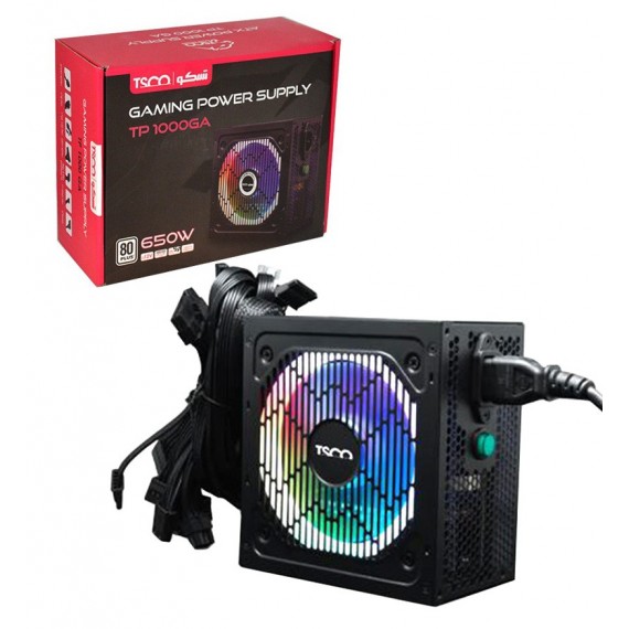 منبع تغذیه کامپیوتر تسکو مدل TP 1000GA با نور RGB طراحی شده و برای اتصال به کیس گیمرها مناسب است. این محصول دارای یک فن ۱۲۰ میلی متری با توان خروجی ۶۵۰ وات است که با کانکتور ۲۴ پین به مادربرد کامپیوتر متصل می شود.