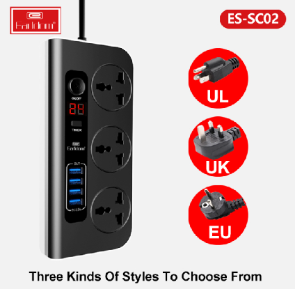 با داشتن چهار پورت خروجی USB می توانید تنها با استفاده از یک کابل شارژ، گوشی، تبلت، پاوربانک و غیره را شارژ نمایید. چند راهی برق ارلدام Earldom Multi-Functional Shockets EU-SC02 دارای ۴ پورت USB با حداکثر توان ۳.۵ آمپر برای هر پورت و همچنین دارای ۳ عدد دوشاخه می باشد.