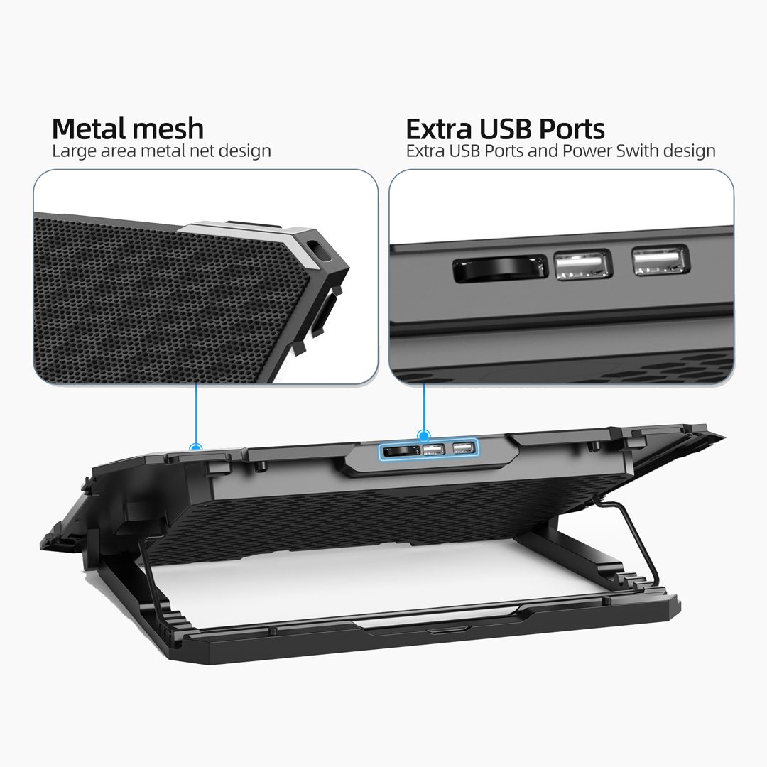 یکی از ویژگی‌های مهم این مدل، وجود دو پورت USB است. به‌این‌ترتیب، حتی زمانی که کول‌پد را به لپ‌تاپ متصل کرده‌اید، باز هم دسترسی به پورت‌های دیگر خود را از دست نمی‌دهید و می‌توانید موس، کیبورد یا فلش مموری را به‌راحتی وصل کنید.