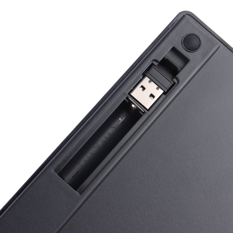 اتصال کیبورد بصورت بی سیم توسط دانگل USB با فرکانس بی سیم ۲.۴ گیگاهرتز و برد اتصال تقریبی ۱۰ متر