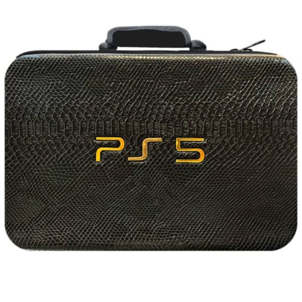 کیف محافظ کنسول بازی PS5 طرح چرمی پوست ماری مشکی، ابعاد و وزن مناسبی دارد و با دسته ای که برای آن تعبیه شده راحت تر حمل می شود. این کیف محافظ پلی استیشن جنس بدنه مقاومی دارد و با قابلیت چند لایه ای بودن و بند چسبی داخلی می تواند از دستگاه شما در برابر ضربه، فشار و آسیب های احتمالی محافظت کند. برای کیف دستگاه ، فضایی برای دیگر وسایل جانبی و همراه این دستگاه مانند دسته های بازی، کابل و … در نظر گرفته شده است.